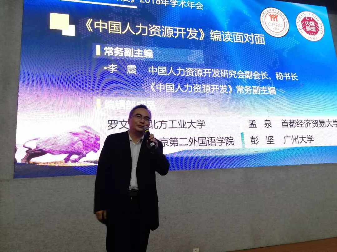 中国人力资源开发研究会副会长、秘书长、《中国人力资源开发》杂志常务副主编李震简要介绍了杂志的特色、编辑部团队的特色以及未来期刊发展的愿景目标。