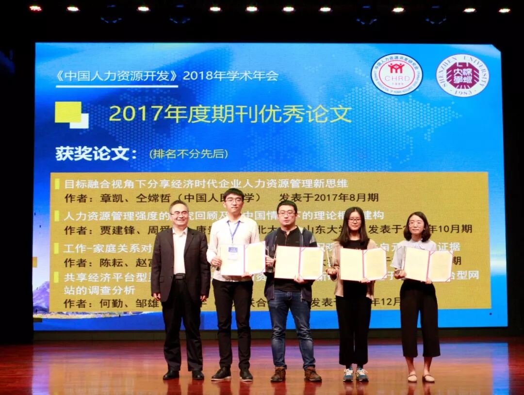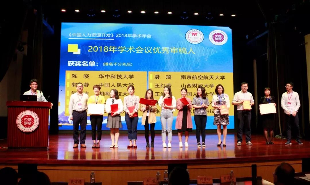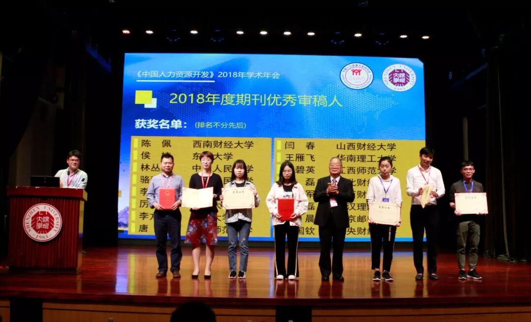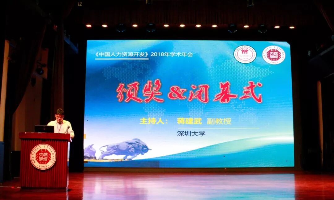 最后,深圳大学管理学院人力资源管理系主任蒋建武副教授宣读了本次年会的四项奖项,并且为本届年会的企业赞助单位颁发了答谢牌。来自《中国人力资源开发》编辑部的领导和老师们分别为10位优秀会议审稿人和10篇会议优秀论文颁发荣誉证书。在本次年会上,同时还发布并奖励了《中国人力资源开发》杂志2018年度的16位优秀审稿人和4篇2017年度杂志优秀论文。