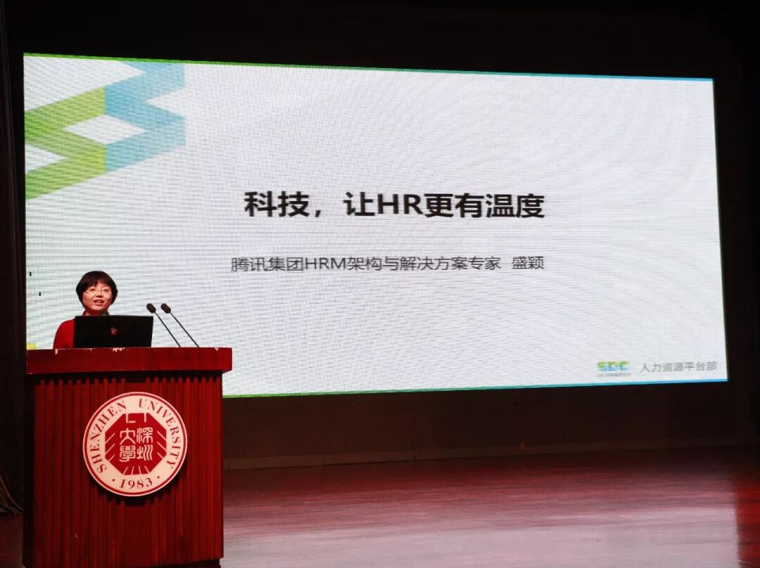 在企业家演讲方面,深圳腾讯集团HRM架构与解决方案专家盛颖女士以“科技,让HR更有温度”为题,分享了科技对于人力资源管理的影响,并探讨了未来工作模式、员工群体和企业趋势的特征。