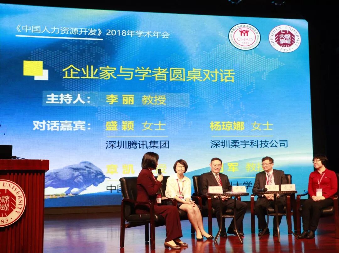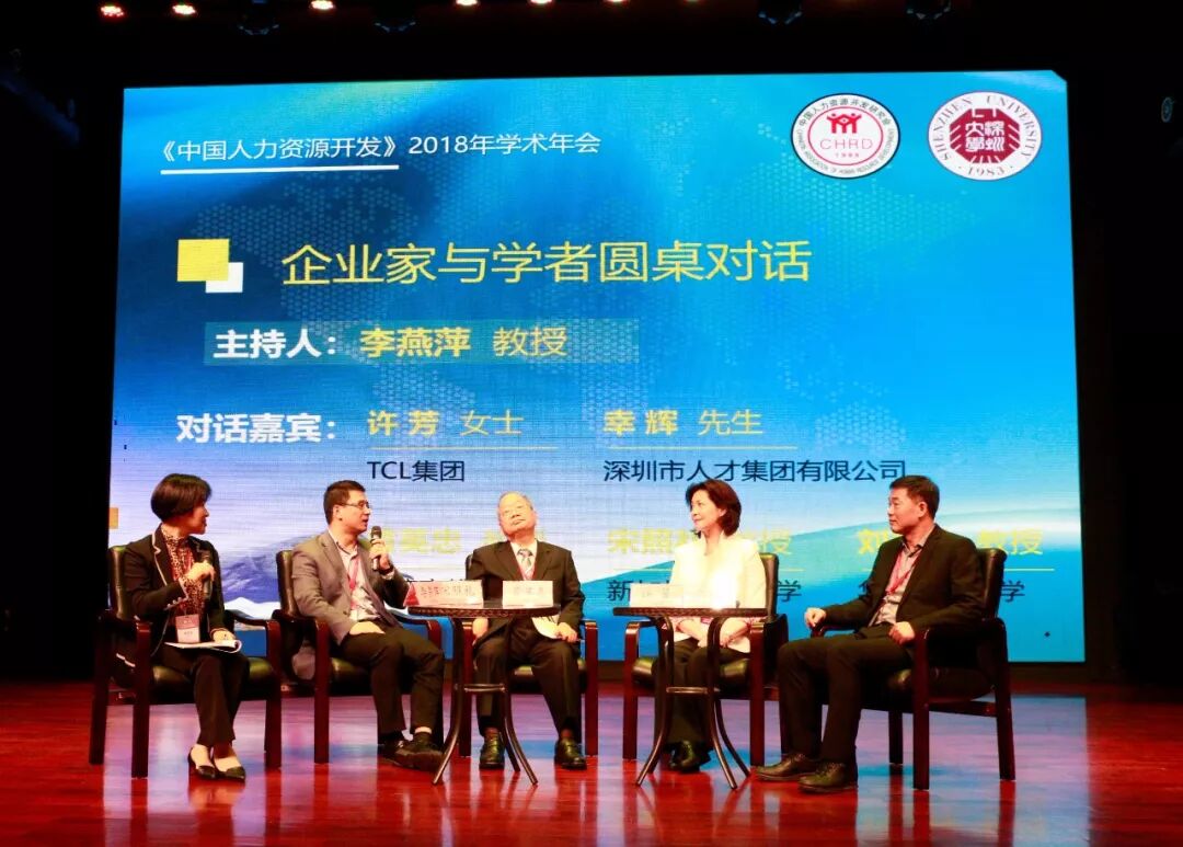 在本届学术年会的主题演讲环节,特意增设了两场学者与企业家的圆桌对话,分别由深圳大学管理学院书记李丽教授和武汉大学经济与管理学院李燕萍教授担任主持人,邀请上述发表主题演讲的学者教授和来自业界的企业家,共同围绕演讲的主题,追踪人力资源管理理论研究前沿,展开了丰富而充满睿智的讨论,引发与会者的深入思考。