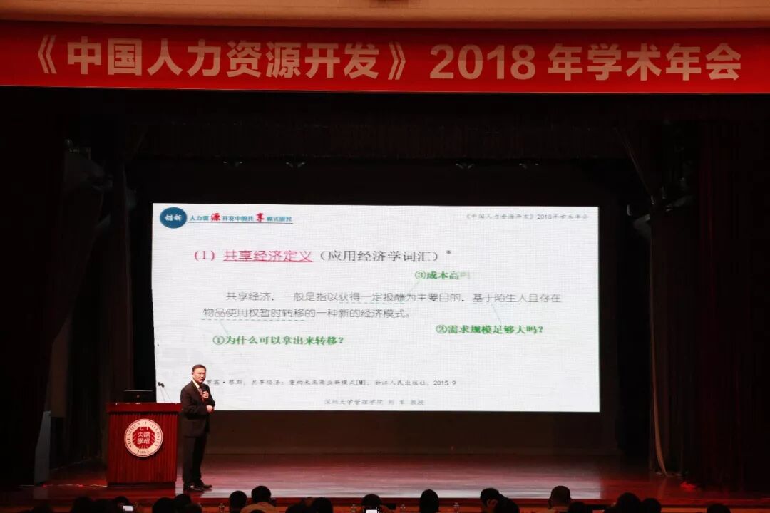 深圳大学管理学院院长刘军教授以“人力资源开发中的共享模式研究”为题作了主题报告,他用诙谐幽默的语言和例子,生动解释了共享模式的缘起、演化和实现三方面的内容,并结合三个具体案例重点分析了人力资源个体价值剩余共享的逻辑。