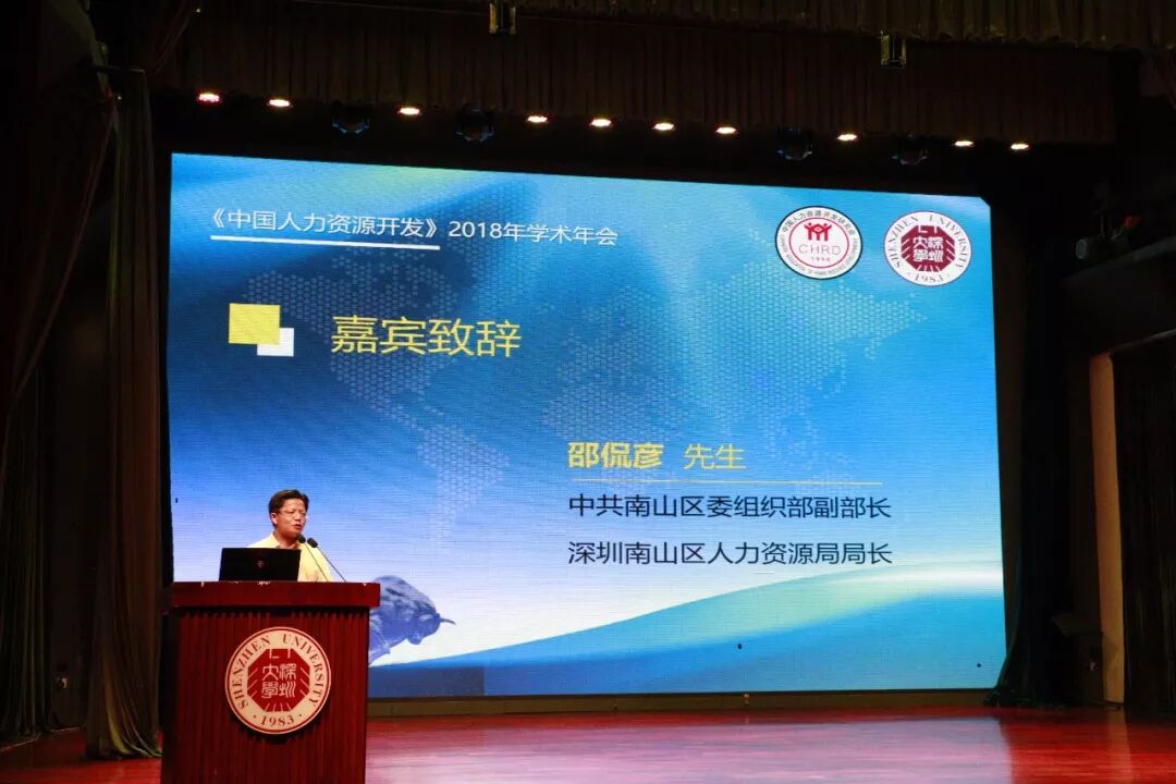 在致辞环节,深圳大学管理学院党委书记李丽教授简要介绍了深大管理学院的基本情况;深圳市南山区人力资源局局长邵侃彦先生为大家展示了南山区作为粤港澳大湾区的核心区,在优化人才结构、提高人力资本方面的优势和努力。