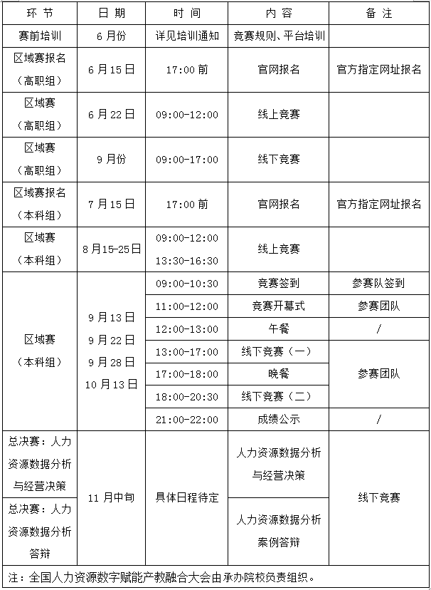 全国总决赛在线下进行,分为“人力资源数据分析与经营决策”、“人力资源数据分析答辩”两个模块。
