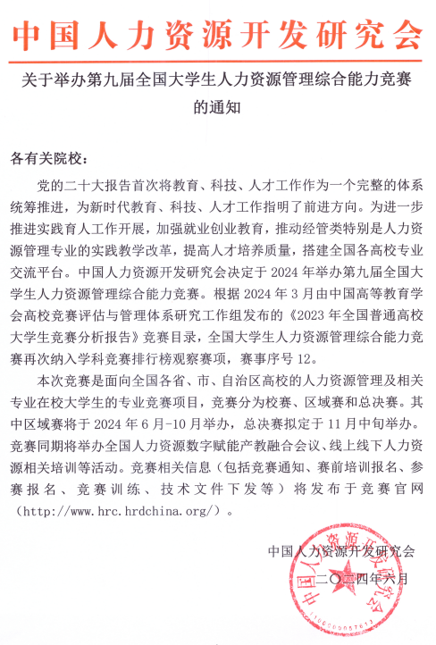 注:竞赛实施细则的最终解释权归全国大学生人力资源管理综合能力竞赛组委会所有。