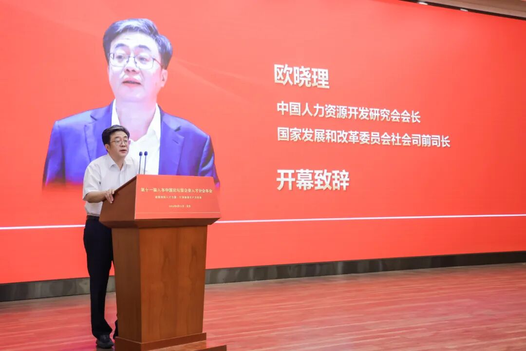 中国人力资源开发研究会会长、国家发改委社会司原司长欧晓理在开幕式发表致辞。欧会长指出,新质生产力的源头在科技创新,落脚点在产业创新,关键因素在创新人才。其形成和发展的关键是科技创新与教育发展。人力资源开发是科技、教育、人才、产业的集中交汇点,应在发展新质生产力中展现更大作为,发挥重要作用。欧会长提出了两个方面的思考,并展开了重点阐述。一是人力资源开发在助力新质生产力发展中扮演着至关重要的角色。二是科技创新是发展新质生产力的核心要素,要下大力凝聚全社会创新力量,充分发挥创新人才的引领作用。欧会长建议,我们共同努力,构建一个开放、包容、合作的创新生态系统,为创新人才的涌现和成长提供更加广阔的舞台,为新质生产力的发展提供坚实的人才保障。