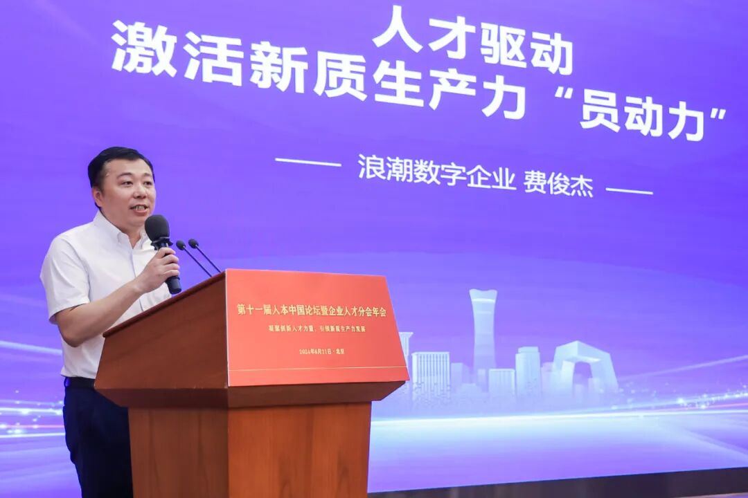 浪潮集团首席咨询顾问费俊杰以《人才驱动激活新质生产力“员动力”》为主题进行了演讲。他指出,“世界一流”人力资源数字化平台五大成功要素,解析了中建集团、中咨集团、国家电投、华夏银行、中国黄金等国内大型企业的创新实践案例。
